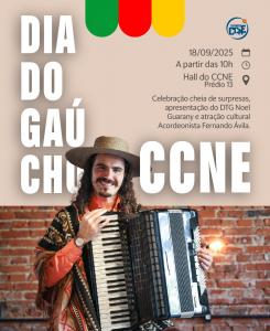 No dia 18 de setembro, a partir das 10h, o Centro de Ciências Naturais e Exatas (CCNE) da UFSM convida a comunidade acadêmica para celebrar o Dia do Gaúcho.