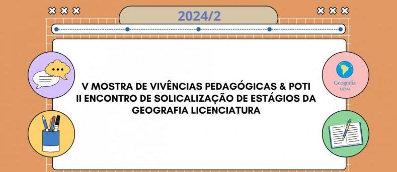 A V Mostra e de Vivências Pedagógicas e de Planejamento e Ordenamento Territorial Integrado (POTI) e II Encontro de Socialização de Estágios objetiva a socialização dos materiais produzidos nas disciplinas com os demais estudantes do curso de Geografia e público geral. Neste ano, a atividade está registrada como evento satélite da JAI.