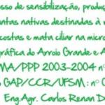 • As apresentações pelos alunos da EEEF Arroio Grande (verbal, textos e desenhos) e debates foram realizadas separadamente, por sala de aula. Grande parte dos alunos manifestaram-se, mostrando percepção da realidade observada. Foi estimulado que: plantassem e cuidassem das mudas de plantas nativas que receberam no final da visita a campo no dia 13/12/10, sendo que muitos informaram que já havia sido feito o plantio e a primeira irrigação das mesmas; acompanhassem e identificassem o desenvolvimento das mudas de plantas de nativas através de fotografias ou desenhos, trazendo este material para a escola no inicio do ano letivo do próximo ano; e, mantivessem manifestações e debates sobre a importância e necessidade de atitudes que busquem a recuperação de áreas degradadas e preservação do meio ambiente junto aos seus familiares e amigos, buscando o comprometimento e participação de todos.