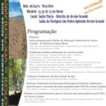 Apresentação pelos alunos da EEEF Arroio Grande (verbal, textos e desenhos) e debates sobre o que foi vivenciado durante as visitas a campo nas áreas demonstrativas de regeneração de mata ciliar junto ao Arroio do Veado realizadas no dia anterior; e, pela observação e análise de banners e da maquete da micro bacia hidrográfica do Arroio Grande e Arroio do Meio em exposição no hall da escola