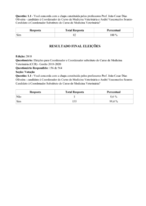 Resultado final da eleição para Coordenador do Curso de Medicina Veterinária