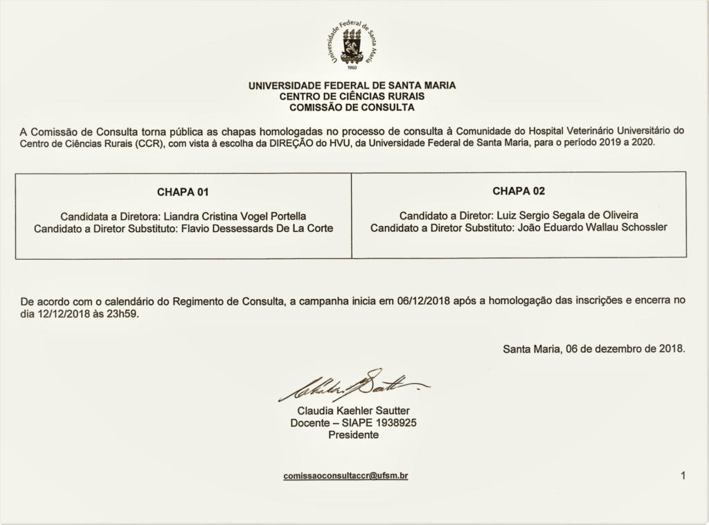 Homologadas as chapas do processo de consulta para Direção do HVU