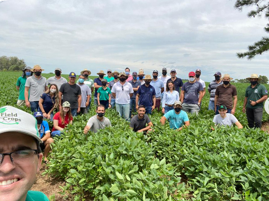 A equipe FieldCrops e mais de 30 produtores e consultores de soja dos municípios de Candelária, Cachoeira do Sul e Rio Pardo estiveram reunidos neste último domingo pela manhã, dia 20 de dezembro de 2020, na propriedade rural do Sr. Eloi Hintz localizada no município de Candelária onde está sendo desenvolvido o projeto “A melhor cultivar e época de semeadura para sua lavoura”. O projeto está sendo realizado em parceria com mais de 50 produtores e consultores da região e visa entender quais são os pontos mais importantes para atingir altas produtividades em uma lavoura de soja.