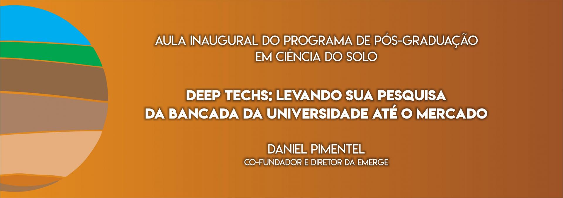 No dia 27 de março acontecerá a aula inaugural do Programa de Pós-Graduação em Ciência do Solo, com a palestra “Deep techs: levando sua pesquisa da bancada da universidade até o mercado”.