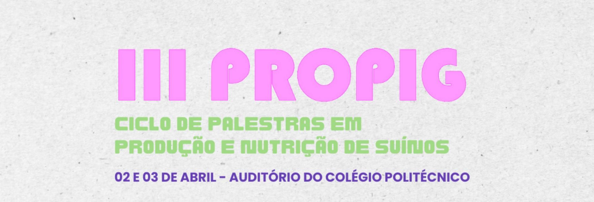 Acontecerá, nos dias 02 e 03 de abril, a terceira edição do ProPig: Ciclo de Palestras em Produção e Nutrição de Suínos.