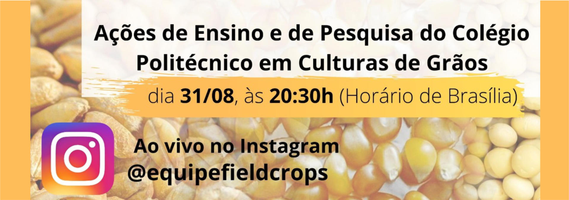 A LIVE – Ações de ensino e de pesquisa do Colégio Politécnico em culturas de grãos ocorre dia 31 de agosto, às 20h 30min, pelo Instagram da Equipe FieldCrops.