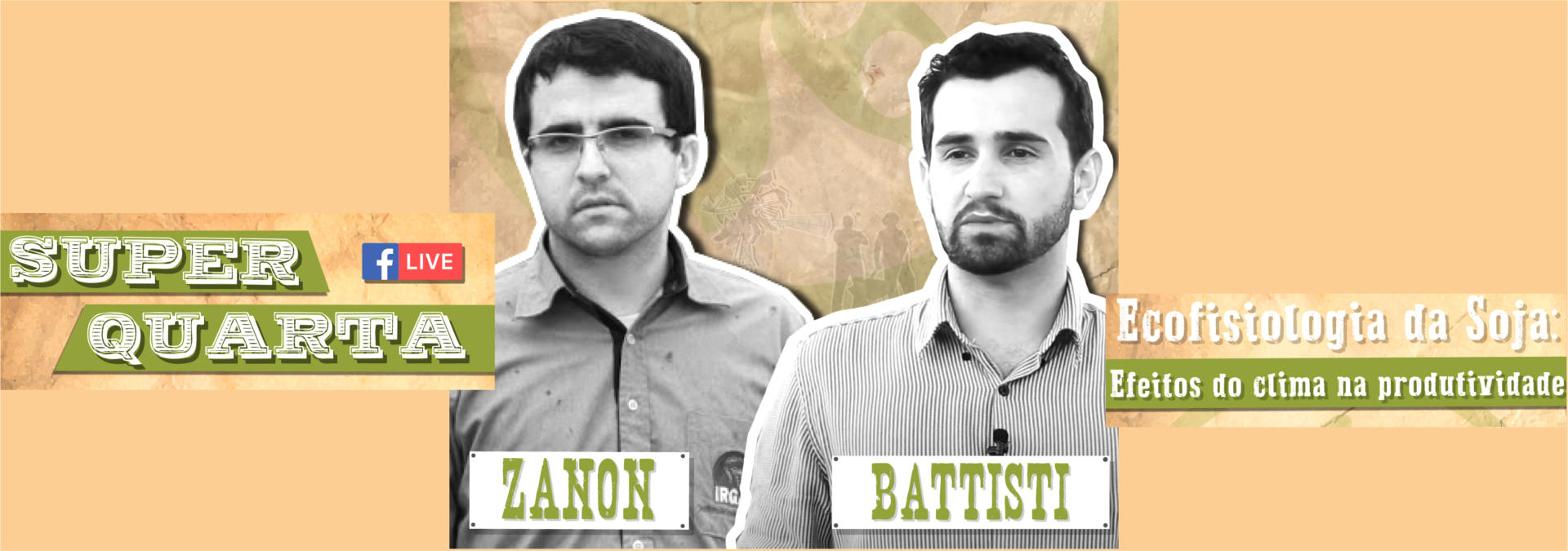Na Live Super Quarta, que ocorre dia 20 de maio, às 20h, estarão debatendo sobre Ecofisiologia da Soja: Efeitos do clima na produtividade os Professores Alencar Junior Zanon (UFSM) e Rafael Battisti (Escola de Agronomia da UFG).