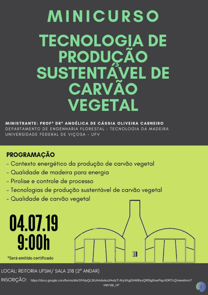 O Programa de Pós-Graduação em Engenharia Florestal da UFSM convida para o Minicurso que será ministrado pela Prof.ª Dr.ª Angélica de Cássia Oliveira Carneiro, do Departamento de Engenharia Florestal da Universidade Federal de Viçosa.