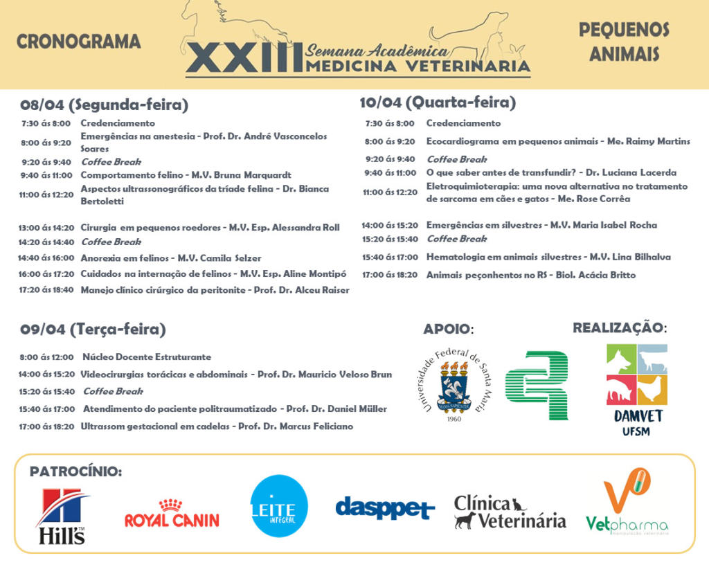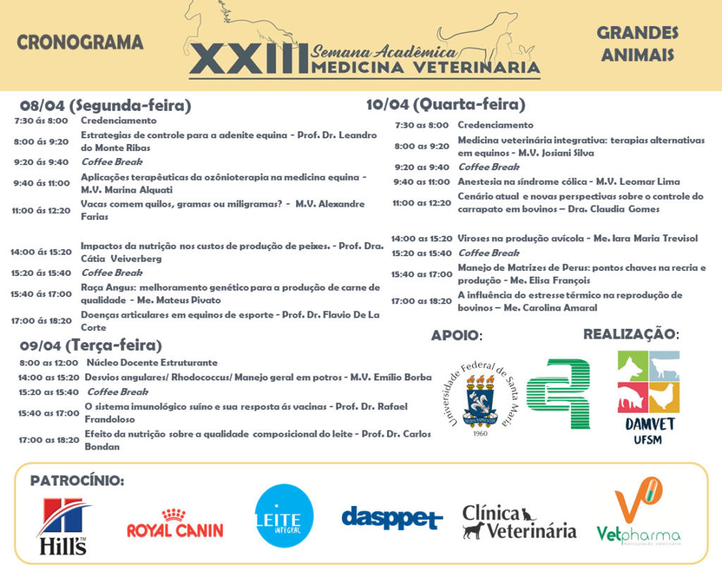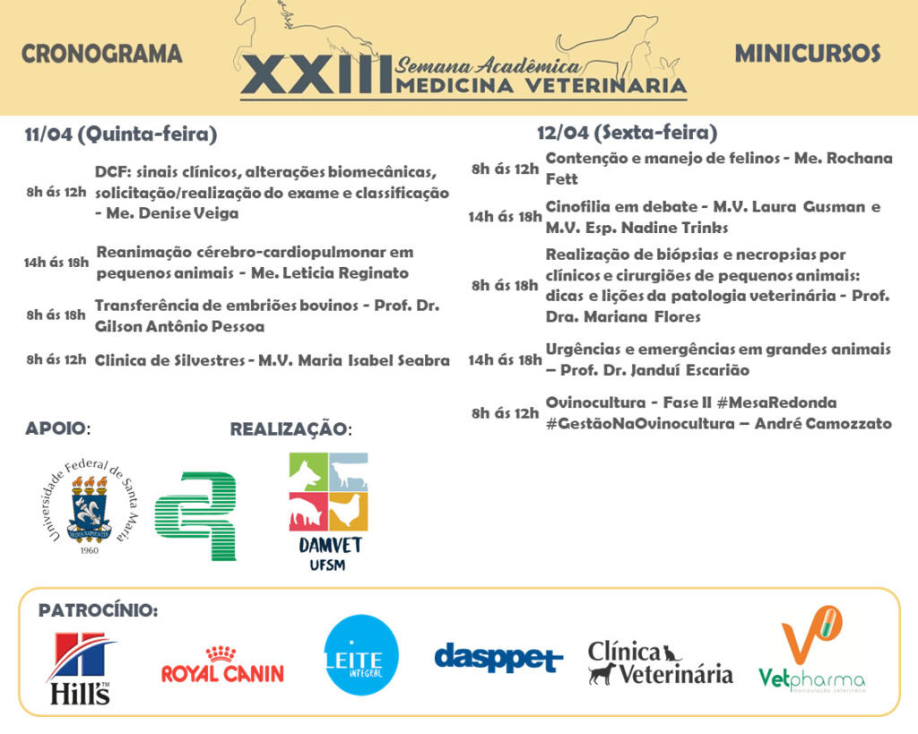 Inscrições (17/03 a 03/04): damvetufsm@gmail.com