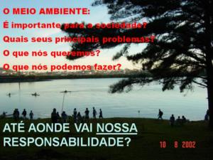 - Oficina de sensibilização ambiental, com exposição de “banners” contendo imagens de satélite e mapas temáticos regionais e locais – Dinamizadores: Dra. Tânia Maria Sausem, pesquisadora do CRS/INPE e responsável pelo Núcleo Geodesastres Sul; Carlos Renan Denardin Dotto, Engenheiro Agrônomo da UFSM/CCR/DER e coordenador do projeto REA Vacacaí.