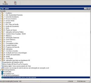 2) O interessado também poderá acessar por conta própria o SIE para fazer as consultas e emitir os relatórios que deseja. Caso não tenha acesso a determinadas aplicações, poderá solicitá-lo mediante Chamado (OTRS) ao CPD, indicando qual aplicação quer que seja habilitada para si enquanto usuário, conforme as aplicações disponíveis na “árvore” do SIE. Para acessar a “árvore” completa, basta clicar no botão “Visualizar”, na barra de ferramentas do SIE: