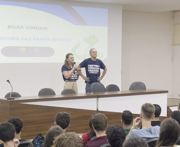 O evento contou com a fala da diretora do CCS, professora Maria Denise Schimith, e do vice-diretor, professor William Schoenau. Em sua mensagem, a diretora destacou que ingressar no CCS significa passar a integrar uma comunidade comprometida com o conhecimento, a ciência e o cuidado com as pessoas.