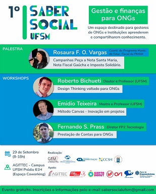 Nesta primeira edição a temática abordada é Gestão e Finanças para Ongs, com a participação de professores da UFSM e profissionais externos.