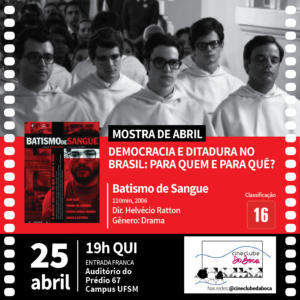 Terceiro e último filme do ciclo “Democracia e Ditadura no Brasil: para quem e para quê?”, “Batismo de Sangue” será exibido amanhã (25), às 19h, no auditório do prédio 67.