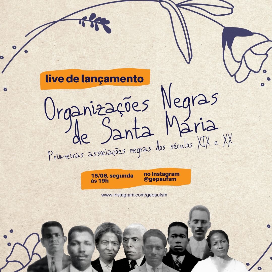 O Grupo de Estudos sobre Pós-Abolição (GEPA), composto por estudantes do curso de História do CCSH, irá lançar nesta segunda-feira (15), às 19h, o livro “Organizações negras de Santa Maria: primeiras associações negras dos séculos XIX e XX”, por meio de uma live no perfil do Instagram
