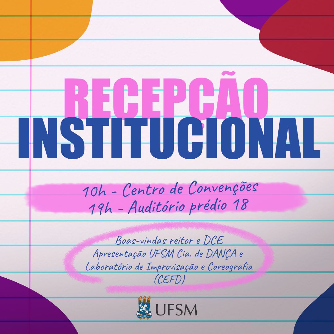 A recepção institucional diurna acontece em 12 de setembro, 10h, no Centro de Convenções, com participação do Reitor, Pró-reitores e DCE, além de apresentações artísticas.