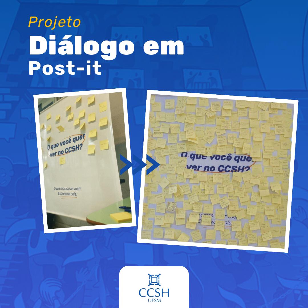 A principal demanda manifestada pela comunidade do CCSH em 2023 no Projeto Diálogo em Post-it foi relativa a ambientação do Hall e Espaços de Convivência, sintetizada em solicitações por puffs, sofás, plantas, áreas de lazer e ambientes confortáveis. Ainda, foram solicitadas ações quanto a outras portas de acesso aos prédios estarem abertas e disponíveis para o uso, e a disponibilização de bancos externos.