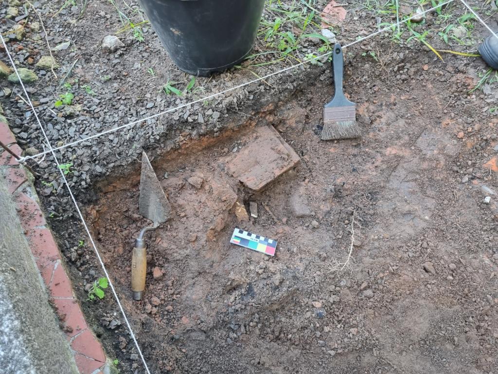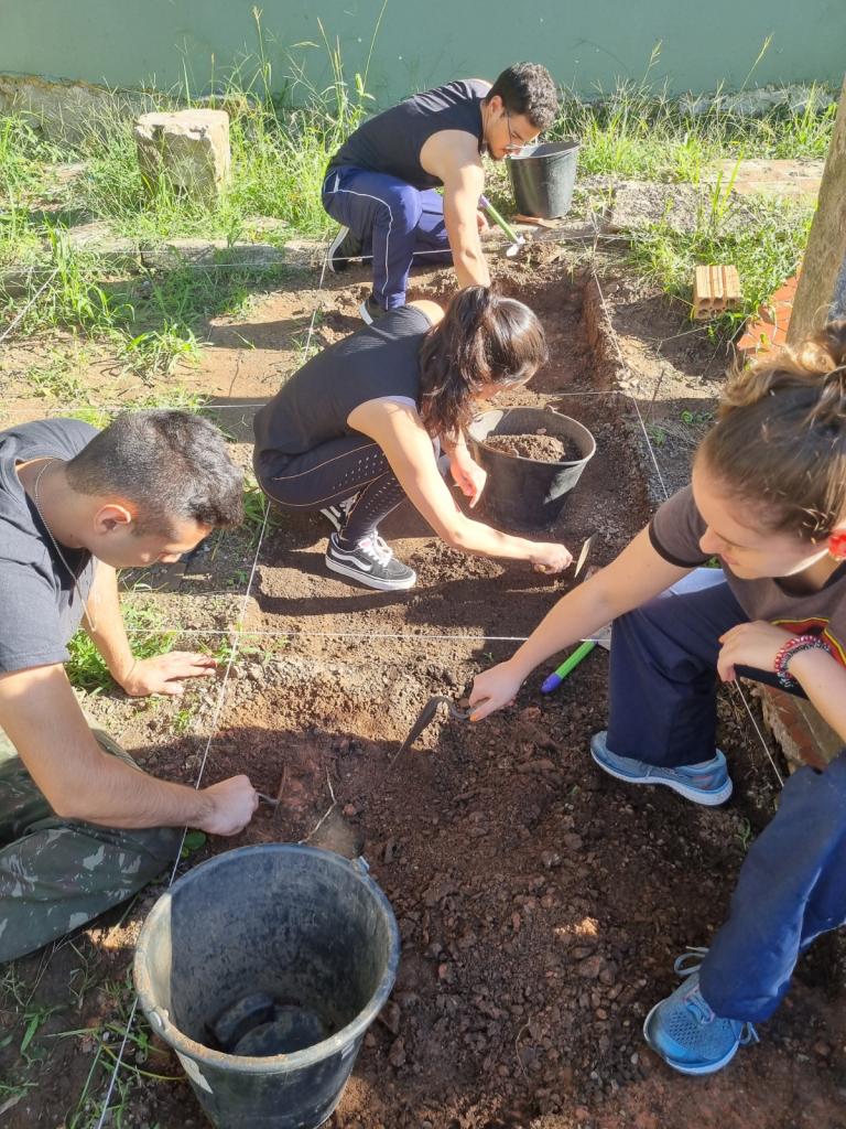 O processo de escavação inicia-se com a delimitação do espaço que será escavado, que nesse caso é uma área de 25m², localizada no pátio do museu. “Temos uma área bastante pequena, que são apenas 25m², mas isso é o que chamamos de amostragem, ou seja, nós não vamos escavar todo o jardim, mas vamos fazer, a partir dessa amostragem, um diagnóstico do que poderia ser encontrado”, informa. Durante esse processo, o professor explica que a amostragem apresentou elementos que apontam que aquela área foi aterrada, ou seja, que o terreno foi preenchido com terra ou outros materiais. “Então nesse aterro, que estamos identificando, o que a gente faz? Nós quadriculamos a área, no caso os 25 metros quadrados, e nessa malha quadriculada fazemos um exercício de decapagem, no caso, retiramos as camadas mais finas possíveis para evidenciar os objetos e ter a localização deles no momento da escavação. Então fazemos uma coordenada geográfica, assim como uma batalha naval, onde temos dois eixos, o eixo X e o eixo Y, para registrar onde esses artefatos foram achados. E depois, em relação à profundidade, nós temos um eixo Z”.