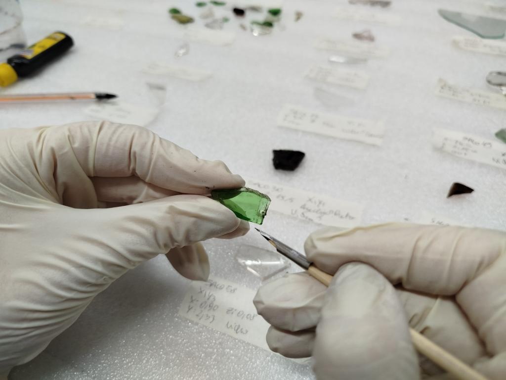 Dessa forma, esses elementos serão organizados em uma planilha, onde será examinada a dispersão dos artefatos, e, onde eles serão classificados conforme a matéria-prima, como vidro, louças, metais, madeira, carvão, entre outras. Ao chegarem no laboratório, as peças são removidas dos sacos plásticos onde foram previamente armazenadas e são higienizadas. Os materiais são agrupados de acordo com as materialidades,e acondicionados em invólucros individuais ou em grupos de até 5 peças. Cada peça recebe um número de registro — inscrito no próprio material ou em etiquetas que acompanham o invólucro — no banco de dados. Informações como dimensões, materialidade e estado de conservação acompanham o número da peça e o acervo é armazenado em caixas de polipropileno 1012 e disposto em estantes metálicas na Reserva Técnica. Até o momento foram encontradas 424 peças, sendo que 312 já foram tratadas e catalogadas no banco de dados.