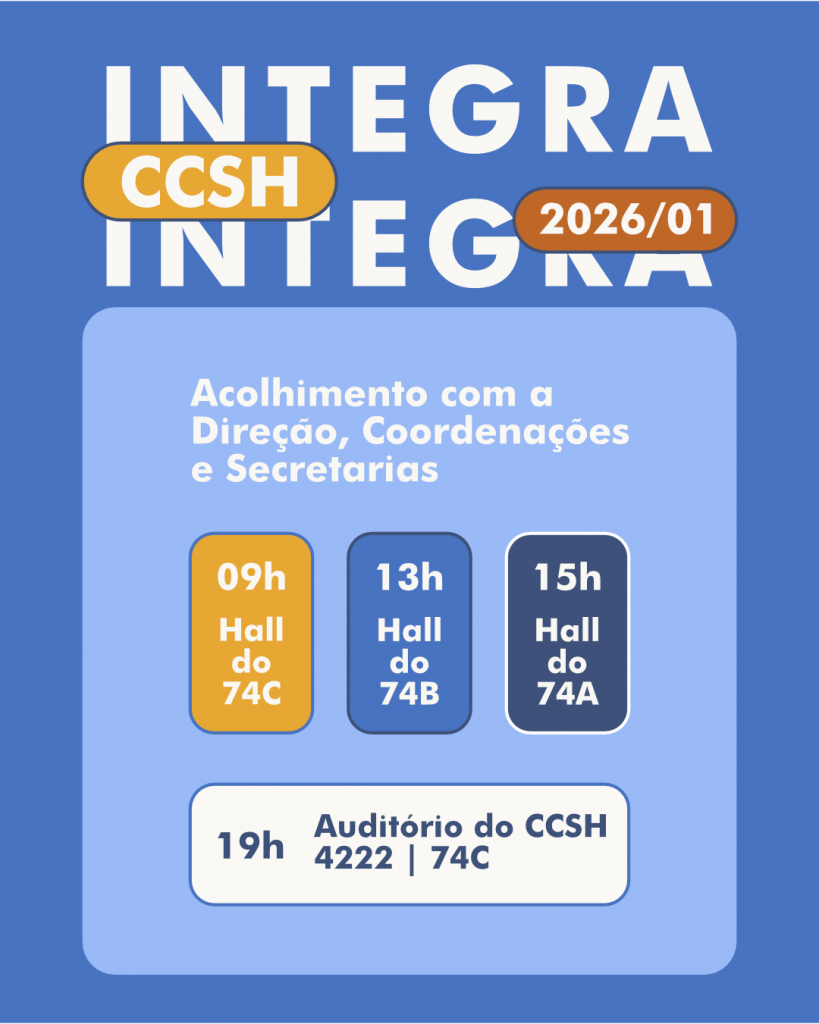 O início de semestre no Centro de Ciências Sociais e Humanas será marcado por um momento especial de recepção e integração. No dia 2 de março, primeiro dia de aula na UFSM, será realizado o Integra CCSH, evento de acolhimento voltado aos estudantes ingressantes e veteranos dos 23 cursos de graduação e 12 Programas de Pós-Graduação do Centro.
