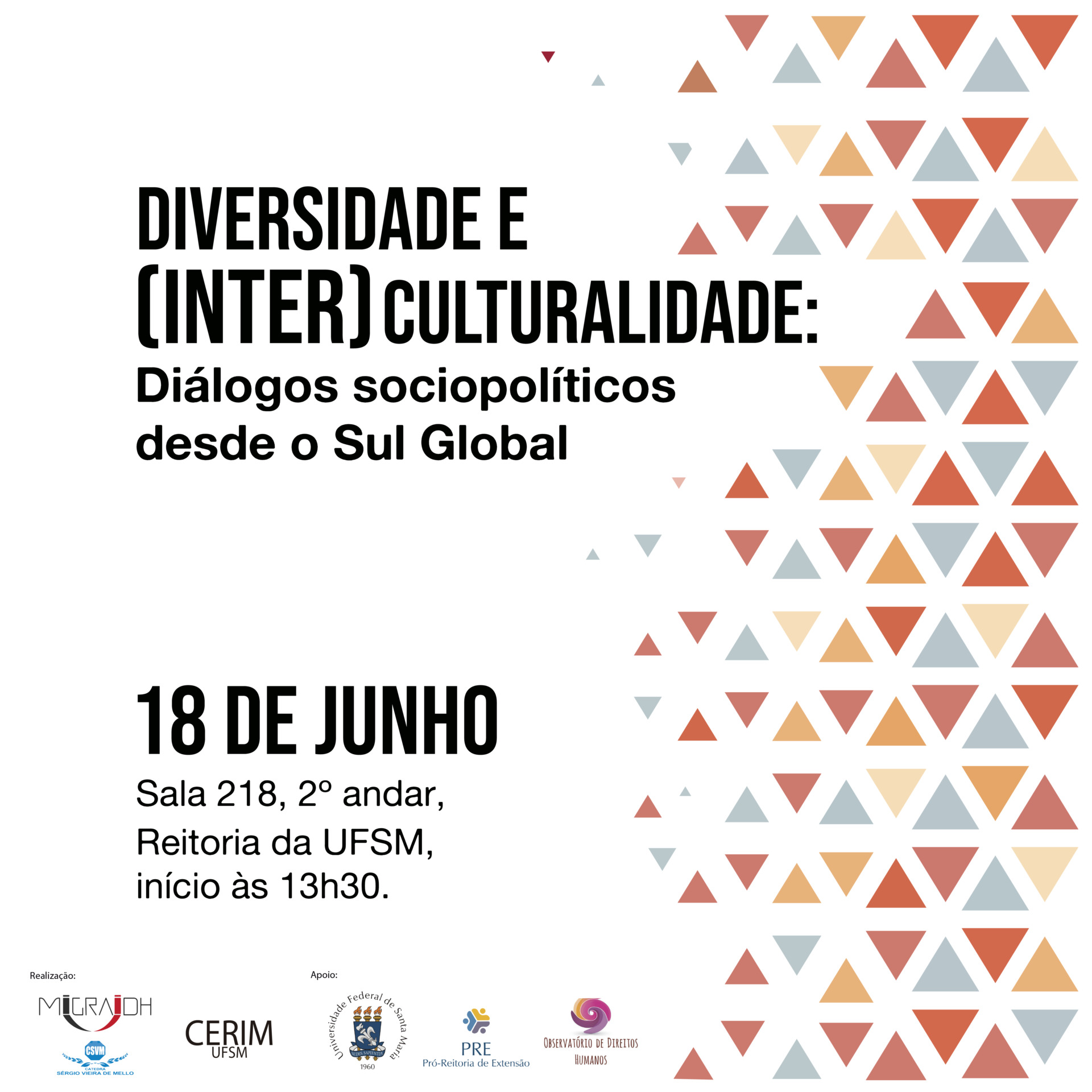 O Migraidh – Cátedra Sérgio Vieira de Mello UFSM e o Comitê Representativo dos Estudantes Refugiados e Imigrantes da UFSM (CERIM) convidam para o evento “Diversidade e (Inter) Culturalidade: Diálogos sociopolíticos desde o Sul Global”.