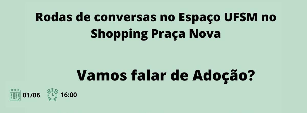 Das 16 às 18h, o Espaço da UFSM no Shopping Praça Nova os membros do NAPS e do GAIA estarão realizando uma roda de conversa com os interessados na temática da adoção.