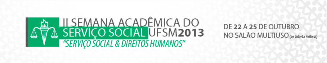 A II Semana Acadêmica do Curso de Serviço Social da Universidade Federal de Santa Maria – UFSM, a realizar-se no período de 22 a 25 de outubro de 2013, tem como tema central “Serviço Social e Direitos Humanos”.