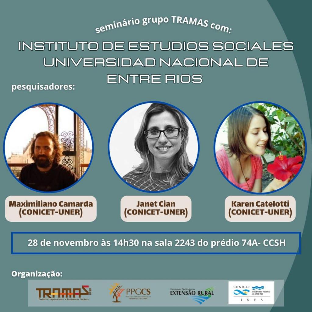 Na próxima terça-feira (28) acontece um seminário aberto do Grupo Trabalho, Agricultura e Movimentos Sociais (Tramas), vinculado ao Programa de Pós-Graduação em Ciências Sociais da UFSM em conjunto com o Instituto de Estudios Sociales (INES), Consejo Nacional de Investigaciones Científicas y Técnicas, Universidad Nacional de Entre Rios (UNER),  Argentina.
