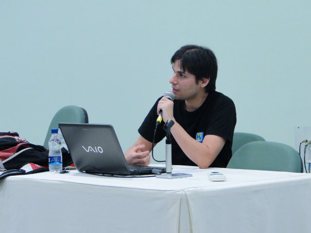 Editor da TV UNIFRA e também editor da TV Câmara, ambas fixadas na cidade, Marcos Borba ministrou a palestra “TV OVO: há 14 anos trabalhando com comunicação comunitária em Santa Maria” no Prédio 67 do campus da UFSM. A fala mostrou as várias atividades da instituição e o seu papel comunitário para a cidade. A TV OVO, que não tem fins lucrativos, existe desde 1996, quando surgiu no bairro Caramelo, na Zona Oeste de Santa Maria. Durante a palestra, as atividades foram sempre intercaladas com a mostra de diversos vídeos feitos pelos alunos da instituição.
