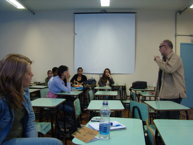 Intercalando com falatório mais teórico, o palestrante contava sobre suas experiências com o audiovisual como produtor e assistente de direção. No final, os espectadores que escutaram atentamente um Beto Matos um tanto hiperativo e divertido puderam experimentar a prática. Cada um dos participantes escreveu uma pequena história com começo, meio e fim. Juntando essas idéias aleatórias, o convidado montará uma espécie de roteiro para filmar um micro-filme na manhã de sexta-feira, segundo dia da oficina. “Não precisamos ser tão catedráticos, metódicos. É preciso pirar às vezes.” Agora, é esperar pra ver o que vai sair dessa doideira toda.