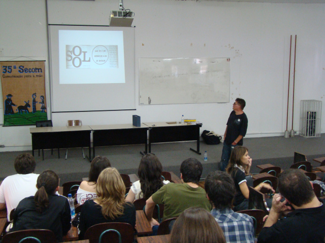 A 35ª Semana Acadêmica de Comunicação da UFSM, a SECOM, teve, no meio da segunda tarde de atividades, uma palestra de Marcos Borba, coordenador geral da TV OVO – Televisão Oficina de Vídeo Oeste da cidade de Santa Maria.