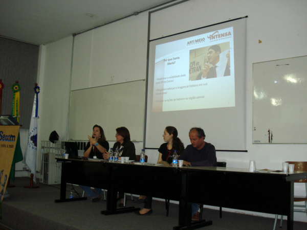 Sim, não – e muitas outras respostas – foram dadas a essa questão durante a tarde do dia 20, na 35ª SECOM. Mara Kunzler e Roberto Oliveira da Art/Meio e Camila Piccolo e Marielle Flôres da Intensa Comunicação participaram do painel “Político é produto? Sim e não”. A discussão abordou aspectos do desenvolvimento de campanhas publicitárias e da prestação de assessoria de imprensa para candidatos em campanha eleitoral. Atrás de um “sim” ou de um “não” e de muitos porquês, os estudantes – principalmente dos cursos de Publicidade e Propaganda e de Jornalismo – praticamente lotaram o auditório do prédio 17.