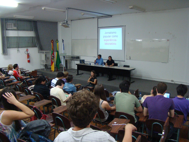 “Jornalismo Popular como experiência-laboratório” foi o tema do debate que contou com as presenças dos professores Demétrio Soster (UNISC) e Márcia Amaral (UFSM). Demétrio iniciou sua fala colocando em pauta a legitimidade do jornalismo não convencional, de caráter mais popular, dizendo que no passado esse tipo de publicação sempre foi mal vista ou relacionada à vida sindical.