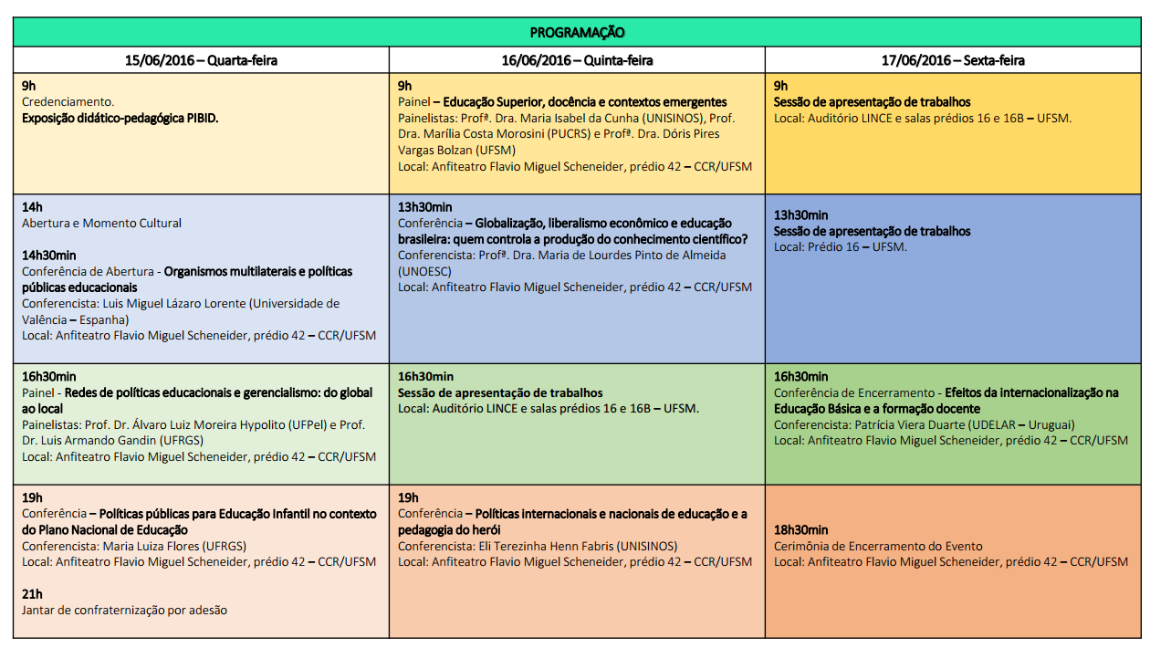 Os seminários são promovidos pelo Programa de Pós Graduação em Educação (PPGE), através do Observatório de Educação (Obeduc), em parceria com o Programa de Pós-Graduação em Políticas Públicas e Gestão Educacional (PPGP) da UFSM.