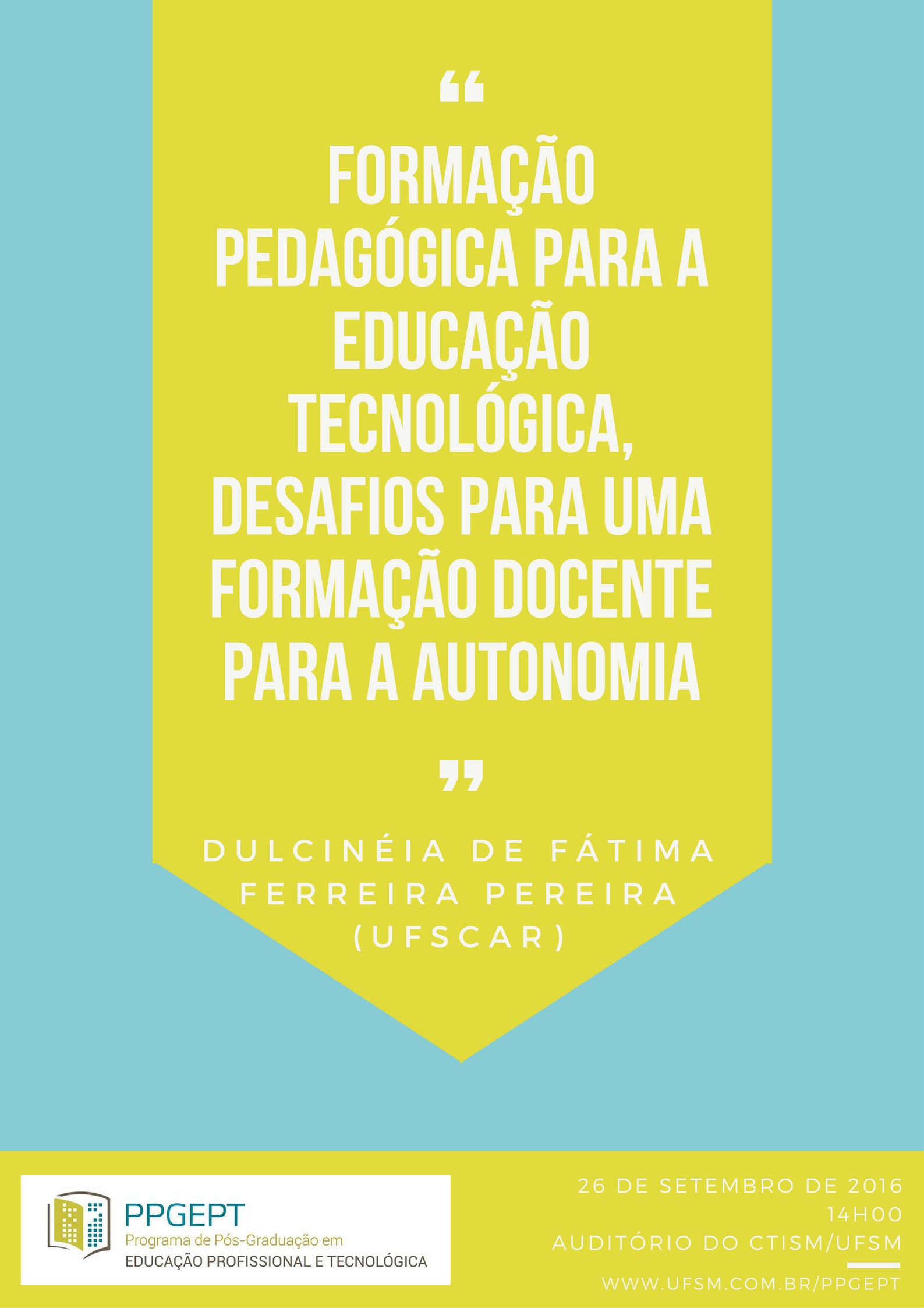 O Programa de Pós-Graduação em Educação Profissional e Tecnológica promove na próxima segunda-feira (26), um debate com a professora Dulcinéia de Fátima Ferreira Pereira, da Universidade Federal de São Carlos (UFSCar/SP).