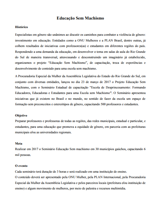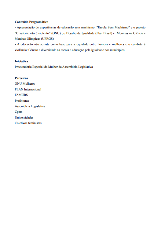 Acontece no dia 15 de setembro o Seminário Educação sem Machismo. O objetivo do evento é preparar professores e professoras de todas as regiões, das redes municipais, estadual e particular e estudantes, para uma educação que promova a equidade de gênero.