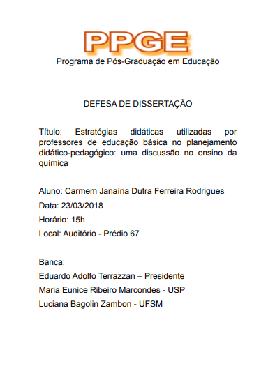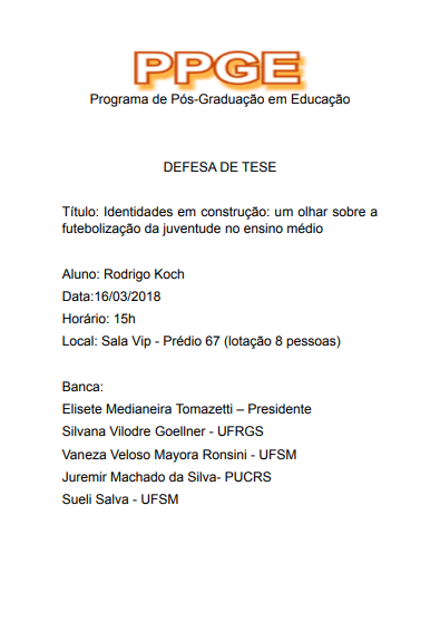 Programação das bancas de defesa do Programa de Pós-Graduação em Educação
