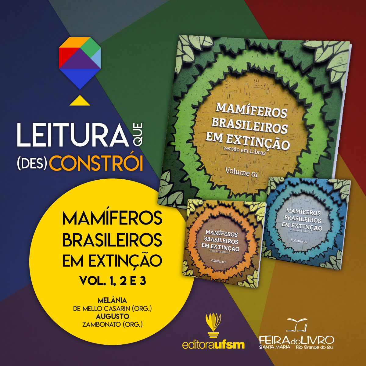 Acontece hoje, dia 09 de maio, a sessão coletiva de lançamentos da Editora UFSM, na 45ª Feira do Livro de Santa Maria. A cerimônia inicia às 17h 30min e conta com uma sessão de autógrafos. Entre os três e-books e seis livros impressos, temos “Mamíferos brasileiros em extinção” que narra as questões sobre a biodiversidade dos mamíferos silvestres brasileiros e alerta sobre espécies que podem desaparecer do planeta. A obra acredita que conscientizar sobre a situação é o primeiro passo para colaborar com o futuro da biodiversidade.