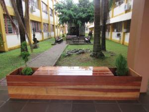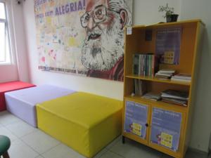 Além dos sofá de paletes, o hall do 16B também conta com um armário de leitura solidária, onde os (as) estudantes podem compartilhar livros, revistas, jornais, xerox, materiais didáticos e paradidáticos.
