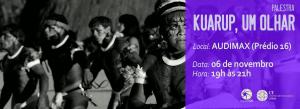 A palestra “Kuarup, um olhar” traz o relato da vivência do jornalista fotográfico Paulo de Araújo junto ao povo indígena Yawalapiti. Os yawalapitis vivem no Parque Nacional do Xingu e tem uma cultura riquíssima. A Palestra faz parte de programação da mostra fotográfica homônima, que estará exposta no Hall da Reitoria e retrata o cotidiano da aldeia indígena Yawalapiti, localizada no Parque Nacional do Xingu, no Mato Grosso (MT). A abertura da exposição está marcada para 05 de novembro, terça-feira, a partir das 9 h. A mostra reúne fotografias que registram a celebração da vida, morte e renascimento do povo indígena.