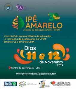 Os 30 anos da Unidade de Educação Infantil Ipê Amarelo e os 50 anos do Centro de Educação (CE) da UFSM serão celebrados em um evento que ocorre nos dias 11 e 12 de novembro, na sede da creche e no Centro de Convenções. Além de estudantes, professores e pesquisadores da área de educação, o evento também contará com a presença de representantes de outras unidades universitárias federais de educação infantil e colégios de aplicação.