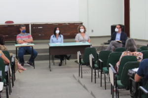 Reunião ocorrida na última quinta feira (14), no Audimax do CE, debateu as dificuldades e perspectivas para os cursos de pós-graduação neste ano. O evento contou com a presença de docentes e técnicos-administrativos vinculados a cursos de pós-graduação do CE e teve como convidados os seguintes professores da UFSM: Luiz Felipe Valandro Soares (Coordenadoria de Pesquisa), Tatiana Emanuelli (Coordenadoria de Pós-Graduação), Leandro Souza da Silva (Coordenadoria de Iniciação Científica) e a Pró-Reitora de Pós-Graduação e Pesquisa, Cristina Wayne Nogueira.