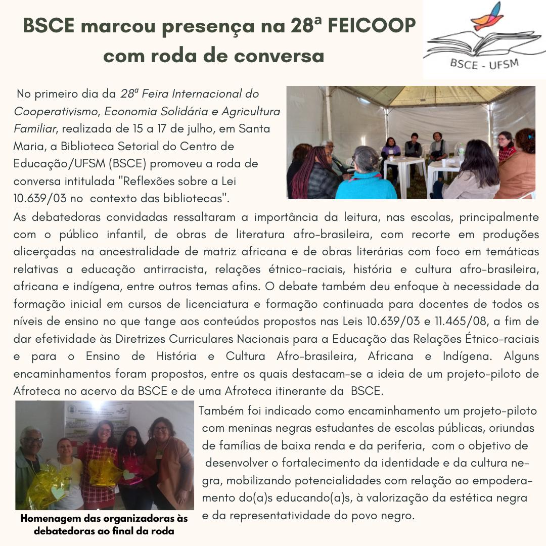 A Biblioteca Setorial do CE participou da 28ª FEICOOP