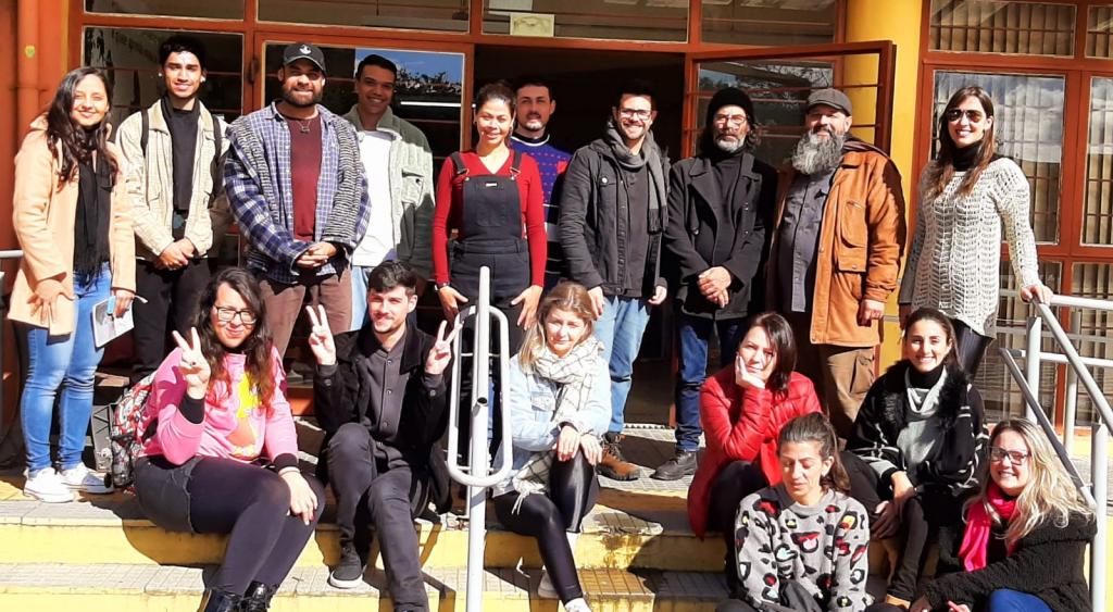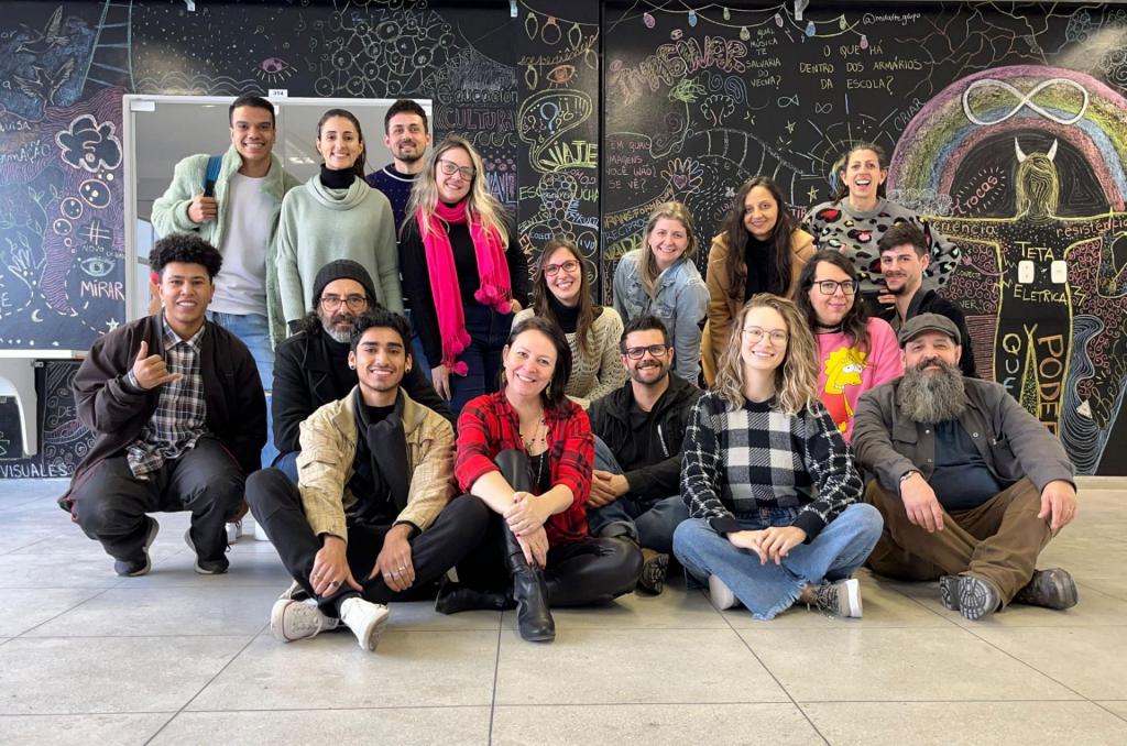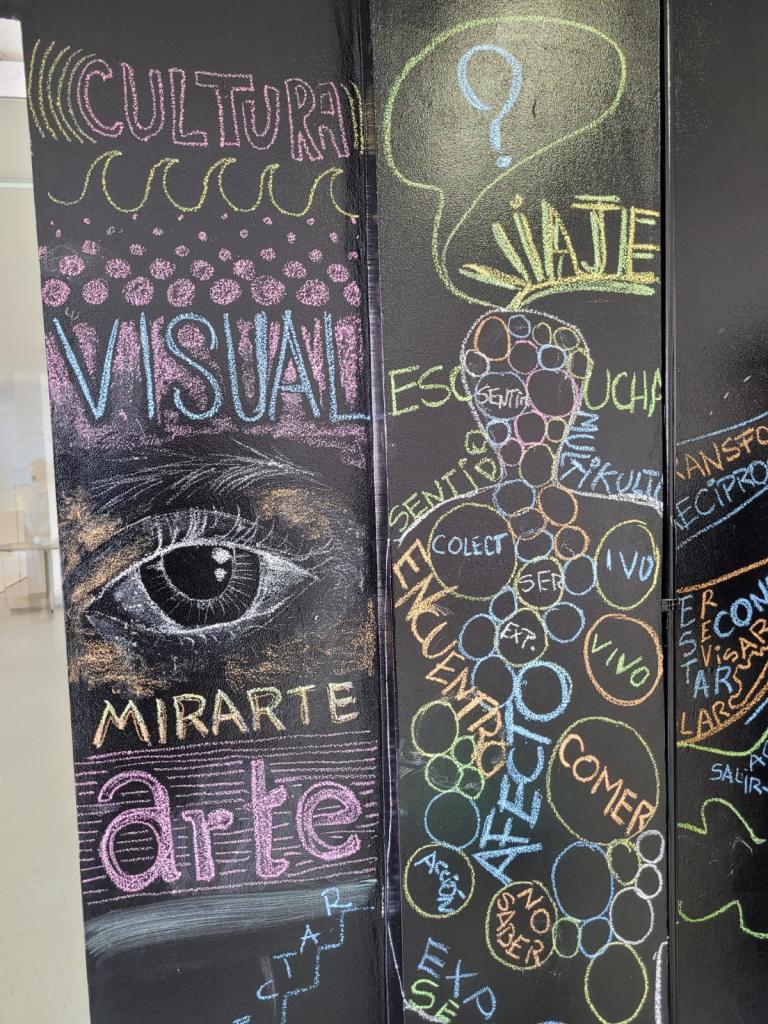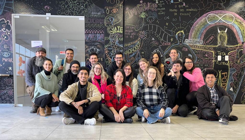 Na última sexta (16) e sábado (17), ocorreu a finalização do Seminário Especial “Metodologías Visuales en la Investigación Educativa”, desenvolvido pelo Prof. Dr. Lutiere Dalla Valle, professor do Programa de Pós-Graduação em Educação (PPGE), Linha de Pesquisa LP4 – Educação e Artes. O Seminário, dirigido aos/as estudantes de pós-graduação (Mestrado e Doutorado) contou com a participação de cerca de 18 estudantes, incluindo três estrangeiros do Programa de Pós-Graduação em Artes Visuais, da Facultad de Artes da Universidad de la República de Uruguay. Desenvolvido de modo intensivo, o curso foi ministrado em língua espanhola (estimulando a aprendizagem do idioma), tendo uma parte realizada em abril (com aprofundamento teórico-metodológico) e uma segunda parte, nos últimos dias, com viés prático e experimental. De acordo com o professor Lutiere, ao finalizar as atividades, o grupo foi desafiado a produzir uma cartografia visual a partir de representações, desenhos e escrita em uma parede, situada no hall do 3o andar do Prédio 16B, do Centro de Educação, onde os/as estudantes “pudessem dar conta visualmente das vivências e aprendizagens apreendidas ao longo do curso”. Para ele, a proposta “buscou fomentar processos artísticos e criativos como um modo de potencializar percursos investigativos no campo da educação, sobretudo permitindo-lhes refletir e experimentar outros modos de fazer pesquisa em educação: autorais, inventivos e inovadores”. O painel produzido coletivamente pode ser visitado até o dia 21 de julho.