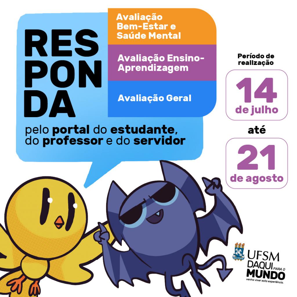 💻 As avaliações já estão disponíveis no Sistema de Questionários nos portais (estudantil, docente e servidor). Período: de 14/07 a 21/08.