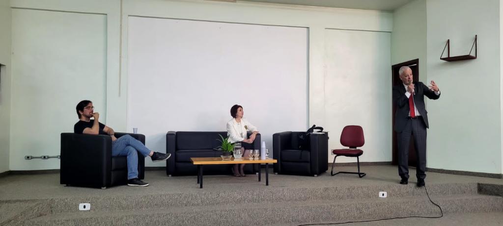 Ao longo deste dia 09/10, nos turnos manhã e tarde no auditório Audimax, o professor e escritor português António Nóvoa participou de duas rodas de conversa com docentes e técnico-administrativos/as do Centro de Educação da UFSM (CE). Na ocasião, o professor abordou os desafios e oportunidades oriundas das novas perspectivas sociais, econômicas e tecnológicas, nas quais a Educação já enfrenta e que tende a se deparar ainda mais nos próximos anos, trazendo um debate reflexivo para a comunidade do CE. Também estiveram presentes lideranças e servidores/as de outros setores da UFSM e do Instituto Federal Farroupilha (IFFar).