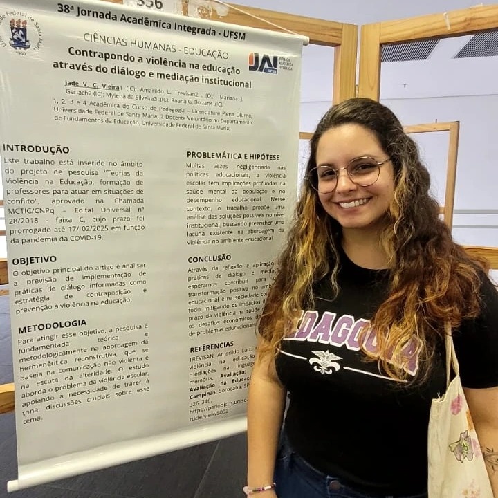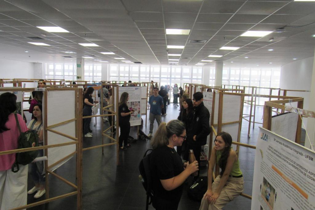 Neste dia 24, no turno da tarde, ocorreu a apresentação de pôsteres referentes aos trabalhos aprovados para divulgação durante a 38ª edição da Jornada Acadêmica Integrada (JAI), no Centro de Convenções da UFSM.