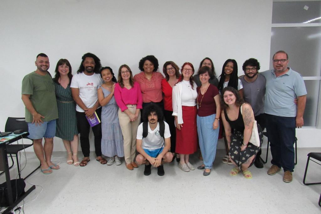 Já no dia 30 de novembro, à noite, aconteceu a roda de conversa com os(as) ativistas e pesquisadores(as) Fabiane Soares dos Santos, Karen Luciélen Pereira Rodrigues e Paulo Roberto Marques Segundo, com mediação da professora do CE: Débora Ortiz de Leão. Na ocasião, os(as) convidados(as) trouxeram a perspectiva da Cultura Afro-Brasileira e Educação Antirracista em diferentes enfoques, mas relacionados a partir de conceitos e fundamentos técnico-científicos. Fabiane é professora dos anos iniciais na rede estadual de ensino do Rio Grande do Sul, no município de Santa Maria, e professora de educação infantil na rede municipal, no município de São Sepé, tendo recentemente defendido sua dissertação de mestrado no Programa de Pós-Graduação em Políticas Públicas e Gestão Educacional. Já Karen Luciélen é pedagoga pela UFSM e formada no Magistério – Justino C. Quintana, atuando como professora do ensino fundamental no Colégio Marista Santa Maria e cursa Especialização em Gestão Educacional, pela UFSM. Por fim, Paulo Roberto é graduado em Filosofia Licenciatura Plena pela UFSM no ano de 2013. Possui mestrado (2018) e doutorado (2022) em Educação, pelo Programa de Pós Graduação em Educação (PPGE-UFSM), sendo atualmente professor substituto de Filosofia do Instituto Federal de Educação, Ciência e Tecnologia do Rio Grande do Sul (IFRS), campus Rolante-RS.