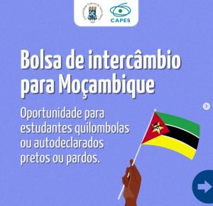 A Coordenação de Aperfeiçoamento de Pessoal de Nível Superior (CAPES) e o Ministério da Igualdade Racial (MIR) abriram a 1ª seleção do Caminhos Amefricanos: Programa de Intercâmbios Sul-Sul. Até 50 estudantes serão selecionados para intercâmbio de 15 dias na Universidade Pedagógica de Maputo (UP), em Moçambique. A informação da oportunidade foi divulgada pela Secretaria de Apoio Internacional da UFSM (SAI), em 13/12/2023.
