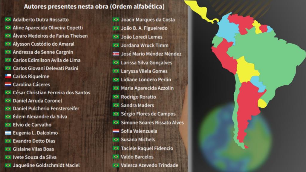 Além de brasileiros, a obra é composta por autores oriundos da Argentina, Chile, Costa Rica e Paraguai. Docentes, técnicos-administrativos e estudantes do CE também compõem a nominata de autores (confira relação de autores nas imagens da capa e contracapa).